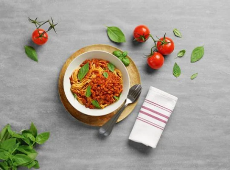 Spaghetti bolognaise à la manière végétarienne : Probablement le classique le plus connu des pâtes italiennes, au bon goût même sans viande.